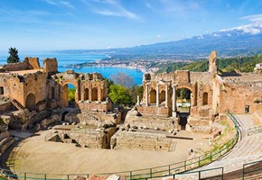 From a base in the laid-back coastal town of Giardini Naxos, explore enchanting eastern Sicily - a perfect combination of scenic coastline, historic cities and unique culture. Enjoy a guided tour of Taormina and its beautiful Greek theatre overlooking the Ionian Sea and uncover the ancient town of Syracuse, the birthplace of Archimedes.