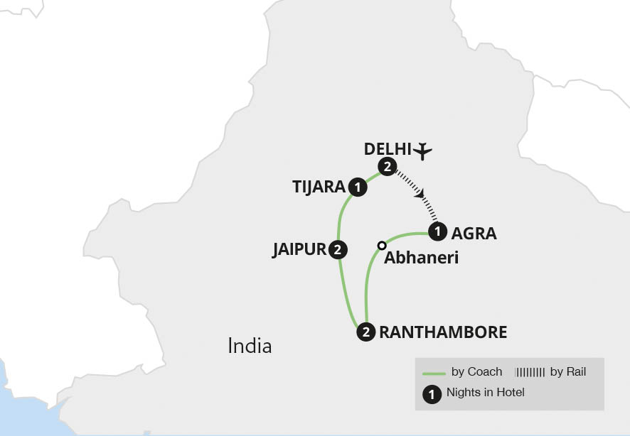 Embrace the spirit of northern India on a journey around majestic Rajasthan and the magical Golden Triangle. Experience the bustling bazaars of Delhi on a rickshaw ride, marvel at Agra's iconic Taj Mahal, visit the spellbinding Chand Baori stepwell and uncover Jaipur's ethereal Amber Fort by Jeep. In the untamed wilderness of Ranthambore National...