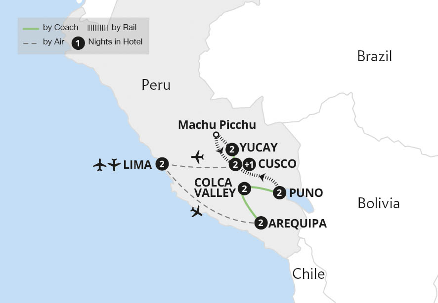 Encounter mysterious Machu Picchu and the gleaming treasures of the Andes on this extraordinary South American adventure. Uncover Lima, Peru's colourful and historic capital, and the shimmering 'White City' of Arequipa before heading high into the Andes to the breathtaking Colca Canyon, where majestic condors soar. Sail to the fascinating...