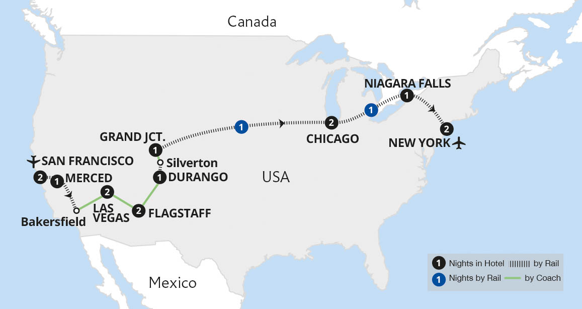 Join us on an epic tour across the United States, a once-in-a-lifetime journey to some of America's most celebrated cities - San Francisco, Las Vegas, Chicago and New York - visiting iconic landmarks including Monument Valley, Yosemite, the Grand Canyon and Niagara Falls. This incredible journey also features legendary trains - Amtrak's...