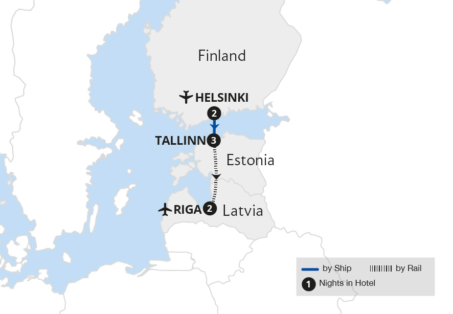 Fly to Helsinki to begin a discovery of three unique countries on the shores of the Baltic Sea. Discover the charms of innovative Helsinki before sailing to Tallinn to uncover the fairytale sights of Estonia's timeless capital. This scenic exploration concludes amid the colourful cobbled streets of Riga, the picture-perfect capital of...